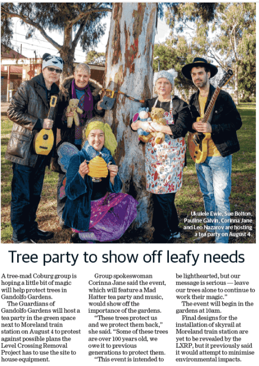 The Moreland Leader reported on the event on Page 5, 29 July 2019 in an article titles: Tree Party to show off Leafy Needs
