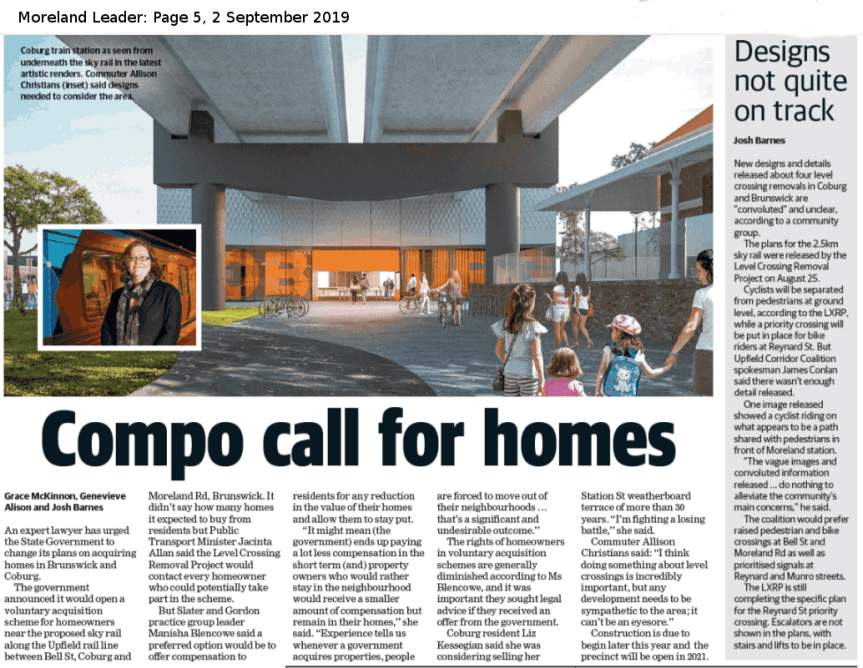 A secondary story – Designs not quite on track – outlines some of the community concern over the recently released designs. This includes addressing the cycling and pedestrian crossings of Bell Street and Moreland Road, as well as other issues around signal priority and pedestrian access at stations, including availability of escalators.