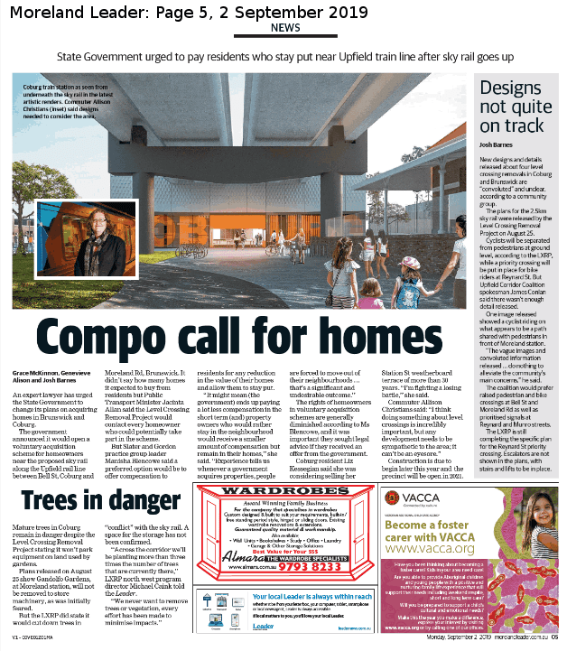 The Moreland Leader featured a full page of news regarding level crossing removal. Three stories were published on the $460 million level crossing removal project on Page 5.