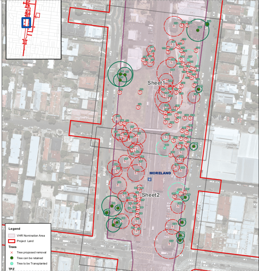 Proposed Tree removals / Moreland Station reserves and Gandolfo Gardens.