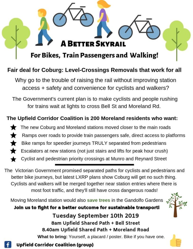 The Upfield Corridor Coalition is a group of over 200 Moreland residents who want: